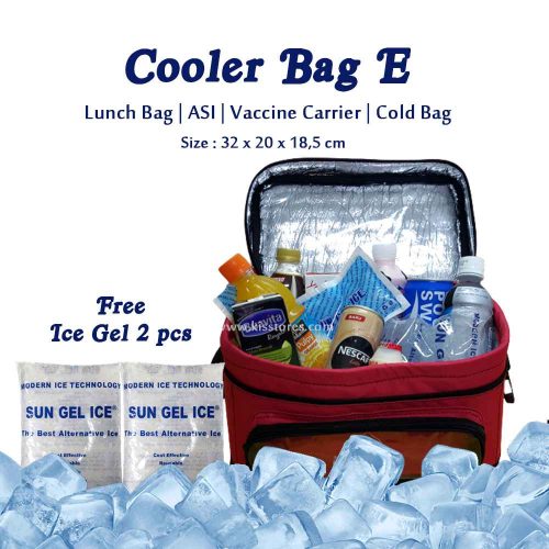Cooler Bag KIS E adalah Tas yang berfungsi untuk menjaga temperatur dingin ataupun panas digunakan untuk menyimpan vaksin dalam suhu dingin untuk sementara waktu ketika akan dikirim ke tempat yang lain. Selain dapat membawa vaksin, cooler bag ini juga dapat digunakan untuk makanan, minuman, buah , sayur, coklat, jus , yoghurt, lunch bag, sample lab, reagen, serum, kantong darah , ikan , daging, permen dan lainnya.