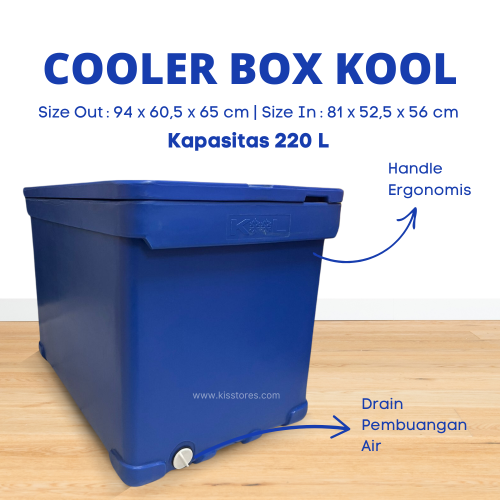 Cooler Box ini berkapasitas 220 Liter Dibuat dengan bahan plastik Polyethylene (PE) sehingga tidak mudah pecah dan tahan terhadap benturan.Di bekali dengan teknologi Max Cool System, cooler box ini mampu menahan suhu di dalam box tetap dingin. Fitur yang terdapat pada Cooler Box ini adalah :