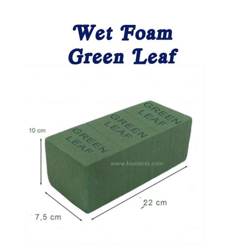 Wet floral foam atau oasis basah atau foam basah sangat bermanfaat untuk menjaga kesegaran bunga hidup dan dapat menopang batang bunga saat diletakan di pot dan juga bermanfaat untuk menumbuh kembang segala bibit tanaman. Foam bunga basah GREEN LEAF memiliki daya serap air yang sangat banyak dan cepat menyerap air serta permukaan yang lembut sangat di sukai pelanggan-pelanggan kami karena sangat membantu usaha bunga segar mereka baik untuk delivery maupun untuk pajangan.